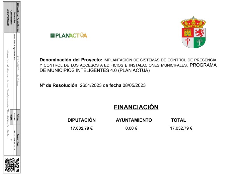ANUNCIO COFINANCIACIÓN SISTEMAS DE CONTROL DE PRESENCIA