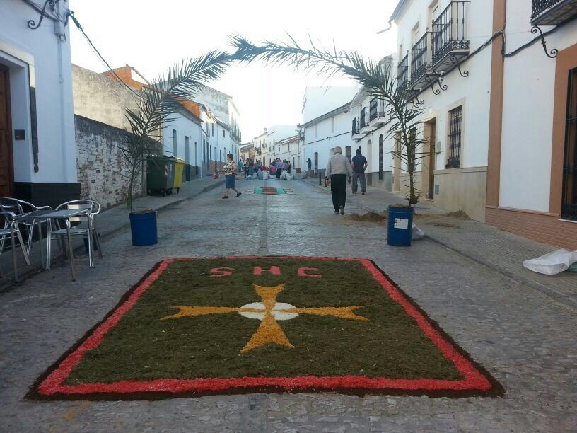 Se celebra, sin fecha fija, un domingo de Junio con la elaboración previa, por parte de los vecinos del municipio, de alfombras florales destinadas a ornamento decorativo de las calles de Almadén.Se celebra por la mañana la Misa y a continuación, la procesión del Santísimo, acompañado por los niños que han realizado su Primera Comunión ese año.La procesión del Santo Cáliz va portado por El Párroco y los vecinos de la localidad.