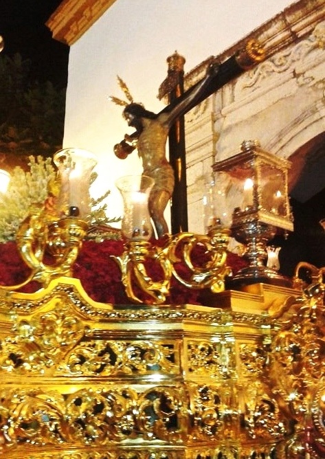 A las 22.00 horas sale el Cristo en procesión, precedido por un gran número de penitentes. A la llegada al Pilar, el grupo rociero de Almadén canta al Cristo y en el Paseo de la Palmera, le dedican unas sevillanas desde un balcón.La entrada al Templo es un momento muy emotivo, en el que sólo se escuchan las indicaciones del capataz a los costaleros, que hasta el año siguiente no podrán llevar en sus hombros al Patrón de su pueblo.La fiesta termina con fuegos artificiales y un toro de fuego, seguido de la actuación en directo de una orquesta.