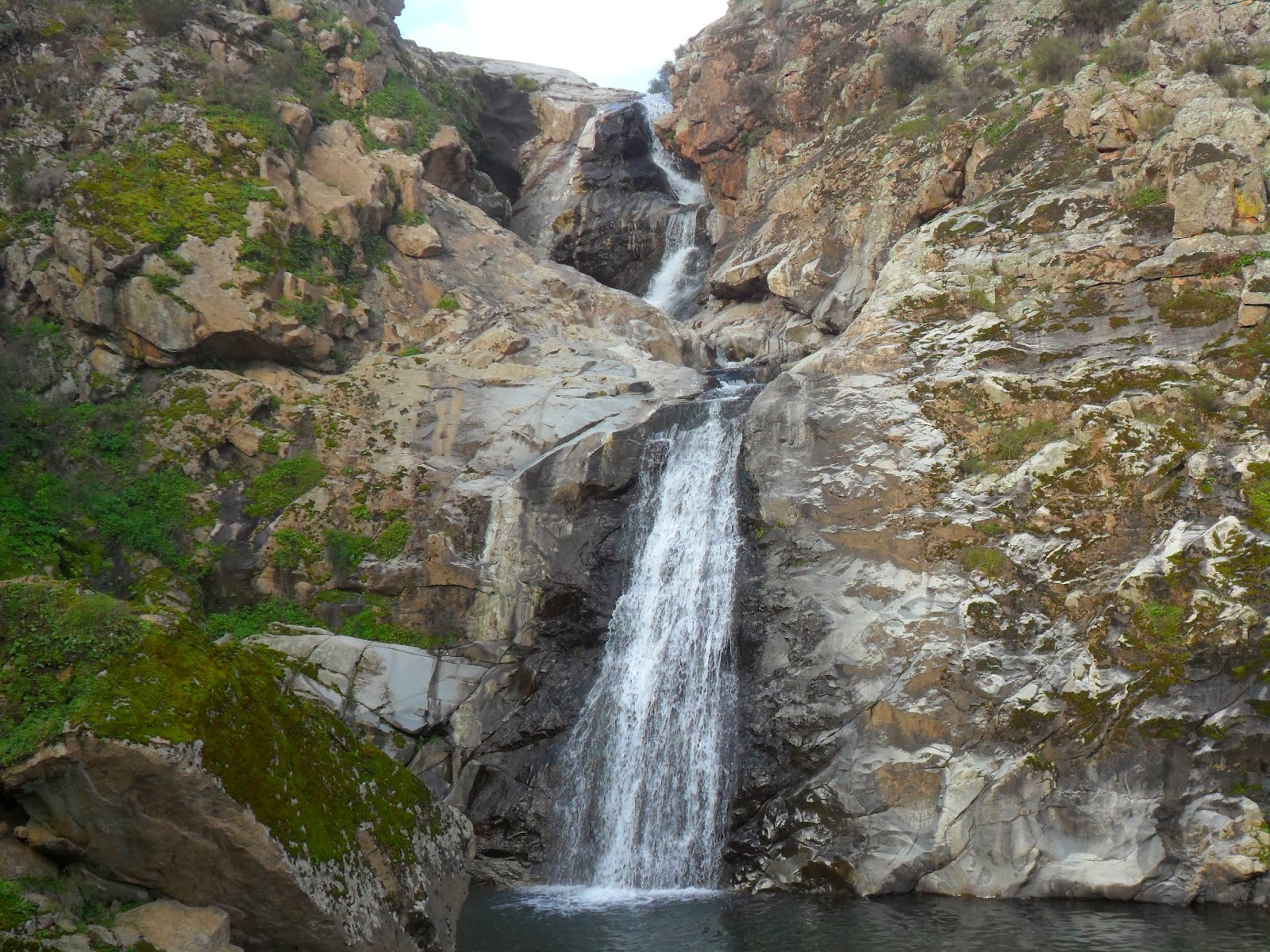 Se inicia en Almadén de la Plata y desciende hasta el Arroyo de la Calzadilla. Se trata de un camino que continua hasta el Pantano de Melonares. Alcanzamos el lugar en el que ambos, sendero y arroyo, se cruzan aproximadamente a 6 km de Almadén. En ese punto nos desviamos a nuestra derecha e iniciamos el ascenso, siempre guiándonos por el ruido del agua y en paralelo a la linde de la Finca El Berrocal, para llegar a un claro en el que nos encontramos un pequeño desfiladero o cañón con una gran roca en medio que origina una catarata que llena un pequeño embalse.